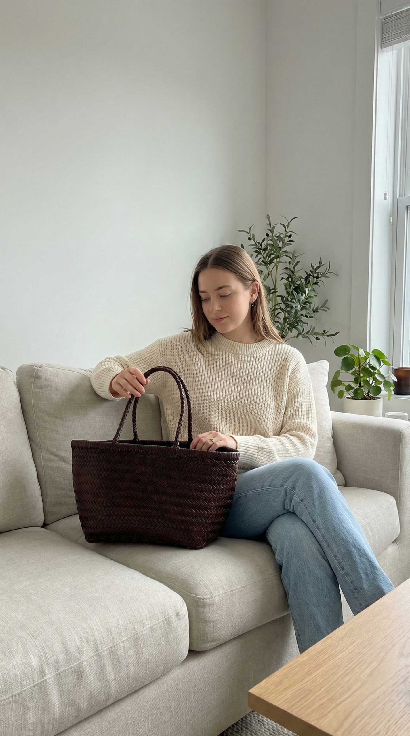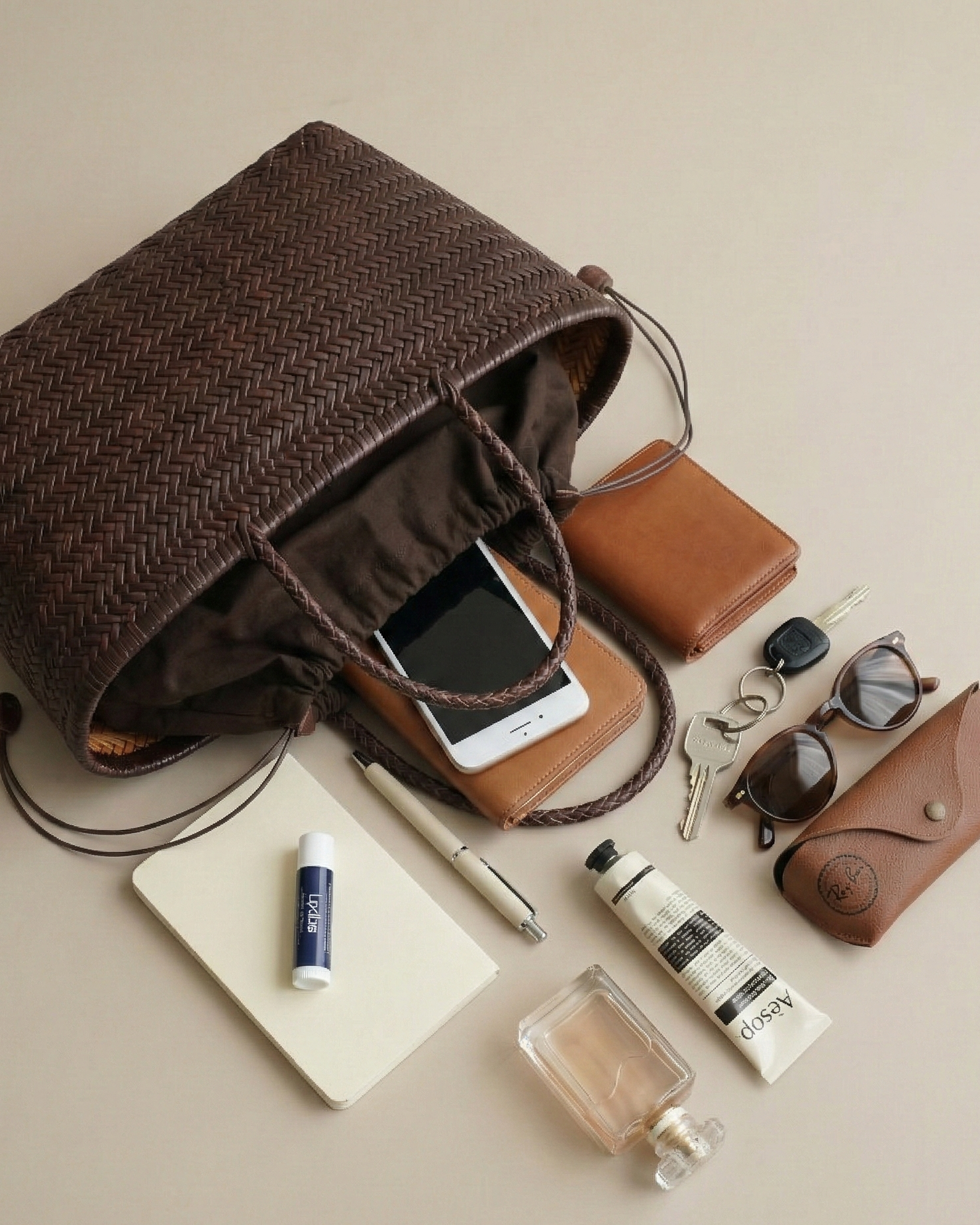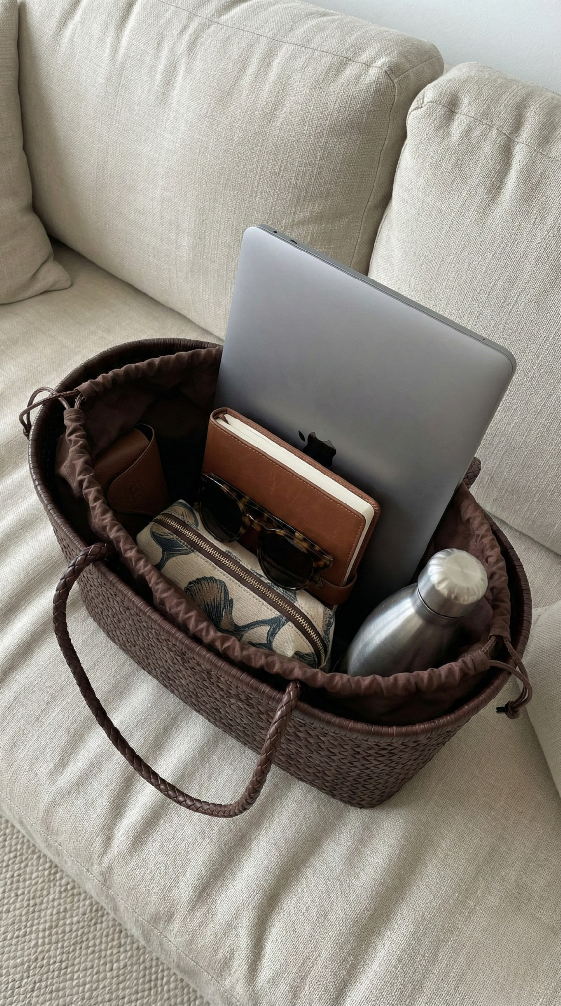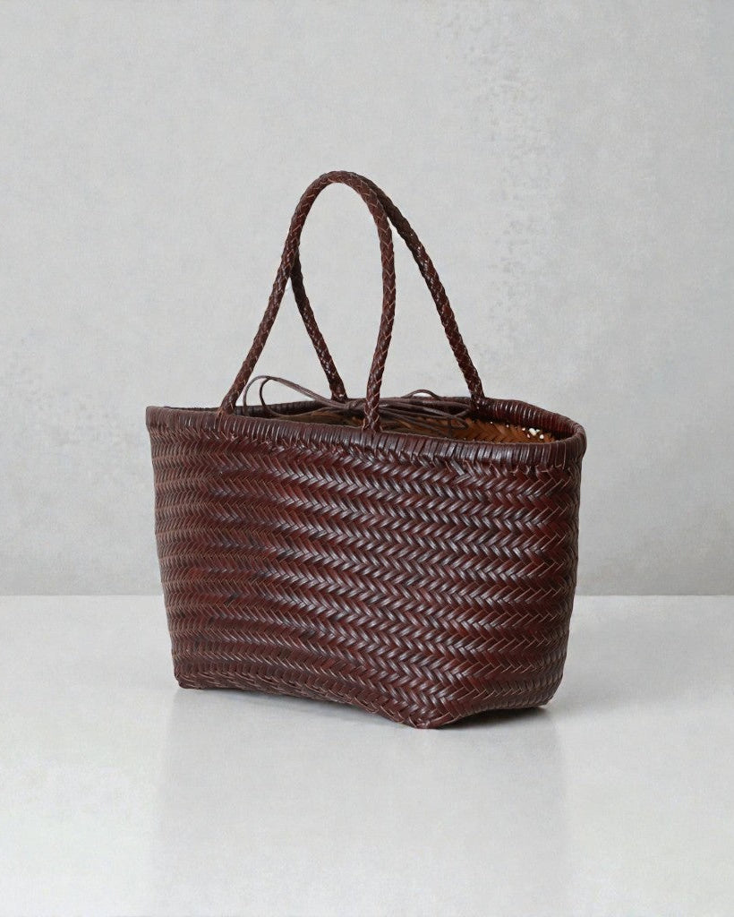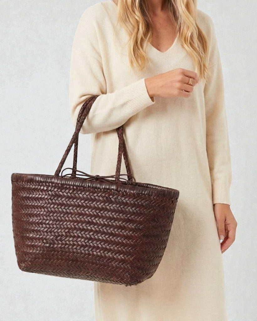 A handwoven leather tote built with thoughtful structure and built-in organisation — so everything has its place, the bag keeps its shape, and you feel put together without trying.